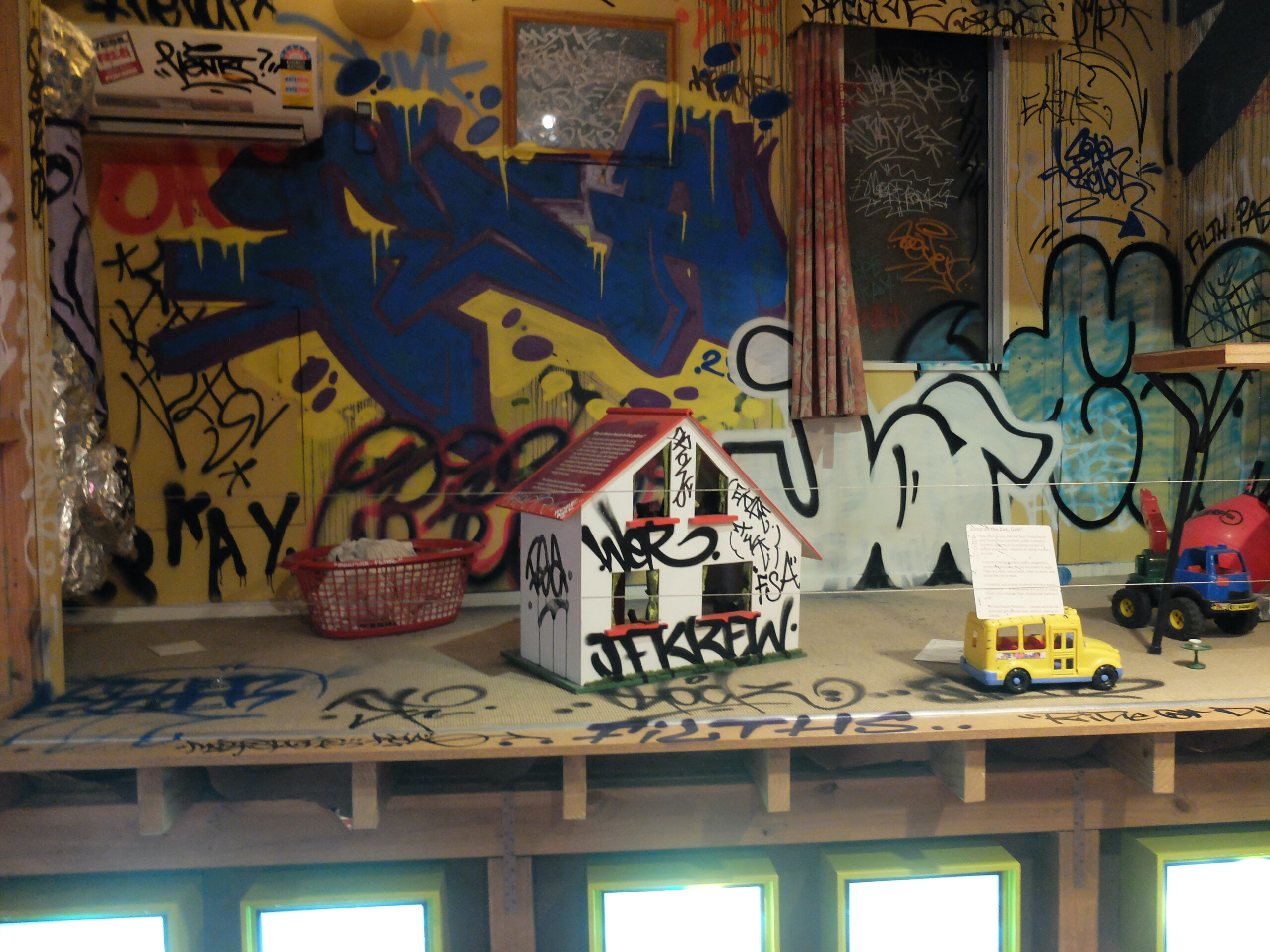 After they emptied the collections safely out, they hosted what they called “the Urban Art Takeover” they invited artists of all kinds to come and paint on the walls, put in installations and generally have some fun. After that was complete, it was opened to the public.